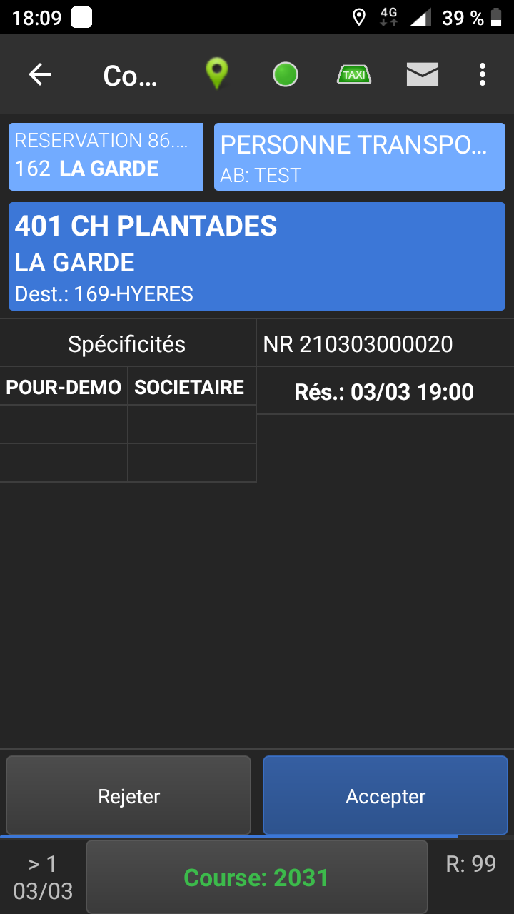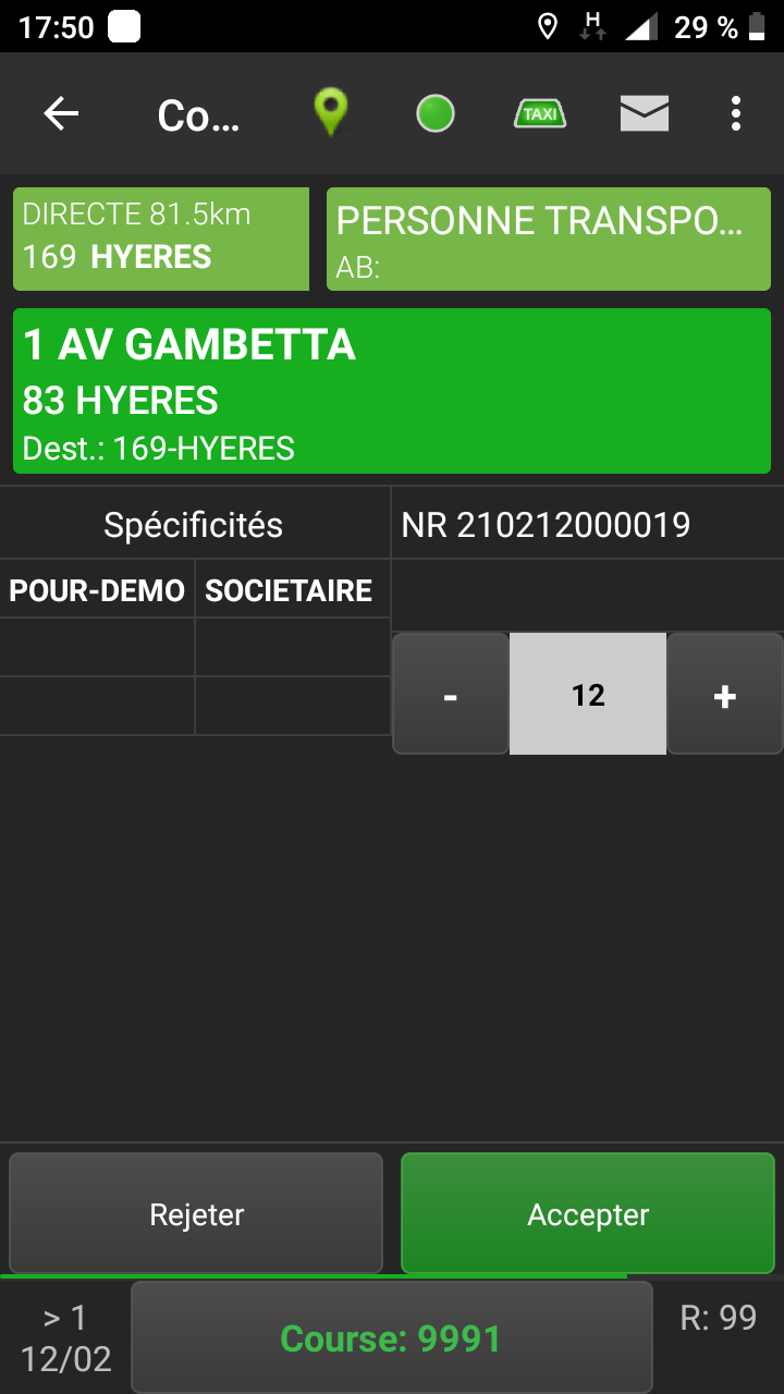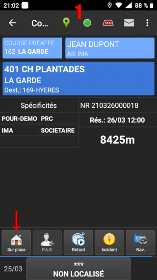 Lorsque vous recupperez la course, vous passez en Occupé jusqu'a ce que le passager monte à bord