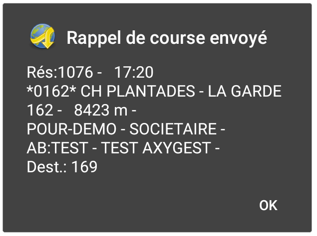 Vous avez terminé en ce qui concerne Aramus, mais il faut impérativement que vous saisissiez la course dans votre espace personnel