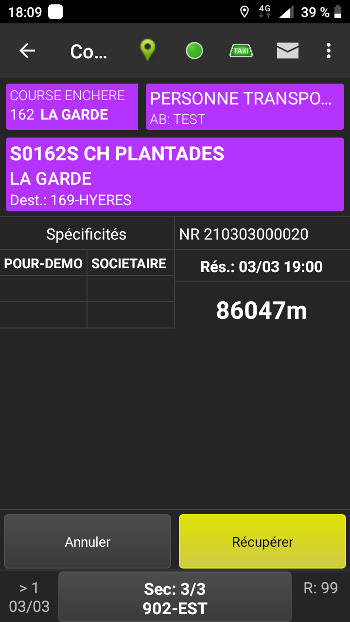 Attention le message Pas de course(s) à récupérer ne veux pas forcement dire qu'il n'y a pas de course(s) dans le menu préaffectation.
